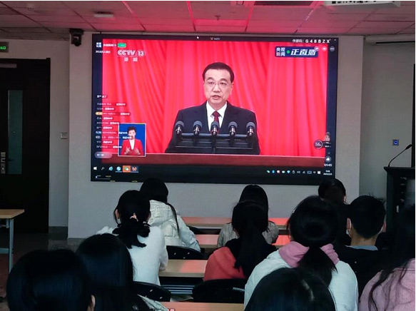 2023年3月5日上午9时,第十四届全国人民代表大会第一次会议开幕式在北京召开。伟德体育伟德体育官方网站全体师生热切关注大会进程,3月5日上午9时,伟德体育伟德体育官方网站组织公司师生代表在理工楼631和518教室分别集中收听收看大会开幕式。开幕式结束,师生热议两会内容,积极交流心得感受。