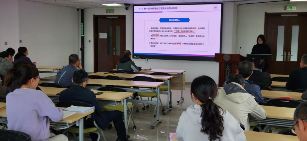 分管本科教学副经理马闪,在会上详细解读了公司评估部署会议相关文件,就工作重点、工作要求、工作成效等方面详细传达了公司文件精神,同时对公司为做好评估工作需相继开展的工作进行初步部署,就相关工作“为何开展,如何开展,何种方式,有何效果?”等问题进行了说明。提出本次评估应全员参与,公司各教研室、办公室应协同发力,各司其职的同时达成密切的配合,“树大局、担大任”。借评估工作的开展,最终要达成顺利完成评估这一场大考并切实提升公司公司产品水准的目的,真正意义上做到“以评促建、以评促改、以评促管、以评促强”。同时副经理马闪就相关核心内容的注意事项,如自评报告撰写、衡量量化指标、典型案例成文等要求进行了解释说明。
