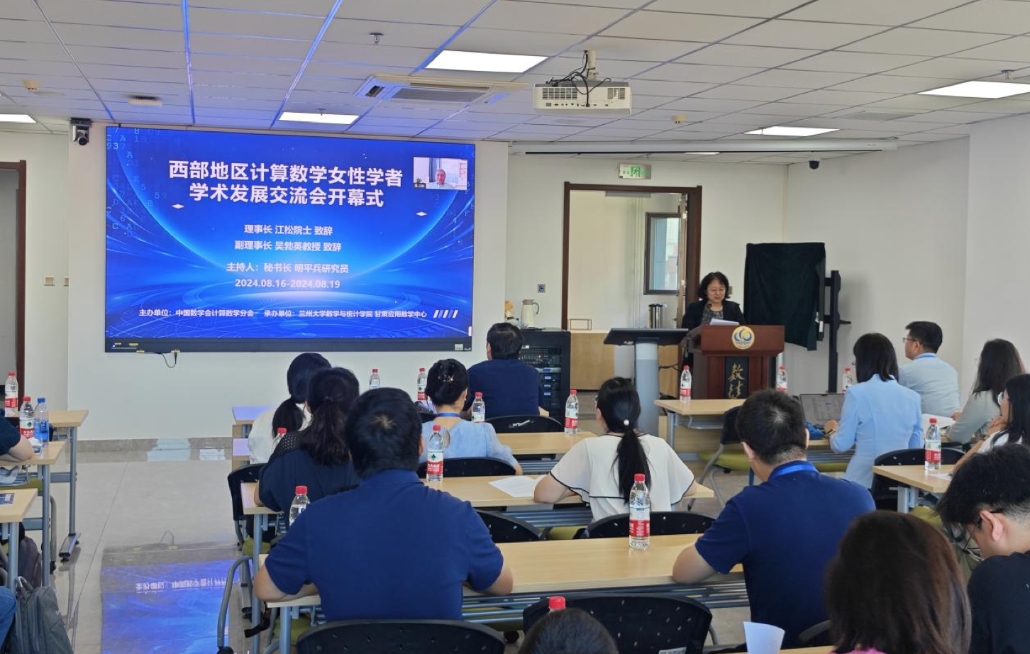 2024年8月16日至19日,“西部地区计算数学女性学者学术发展交流会”在伟德体育伟德体育官方网站顺利召开。会议由中国数学会计算数学分会主办,伟德体育伟德体育官方网站和甘肃应用数学中心承办,并受到伟德体育伟德体育官方网站和国家自然科学基金支持。大会开幕式于8月17日上午8时30分在伟德体育伟德体育官方网站报告厅举行。出席会议的领导有中国数学会计算数学分会理事长江松院士,学会副理事长吴勃英教授、邓伟华教授,常务理事杨银教授、晏文璟教授、李晓丽教授;出席会议的有8名特邀大会报告人,11名特邀分会报告人、来自全国各地的专家学者及伟德体育伟德体育官方网站师生80余人。开幕式由学会秘书长明平兵研究员主持。
