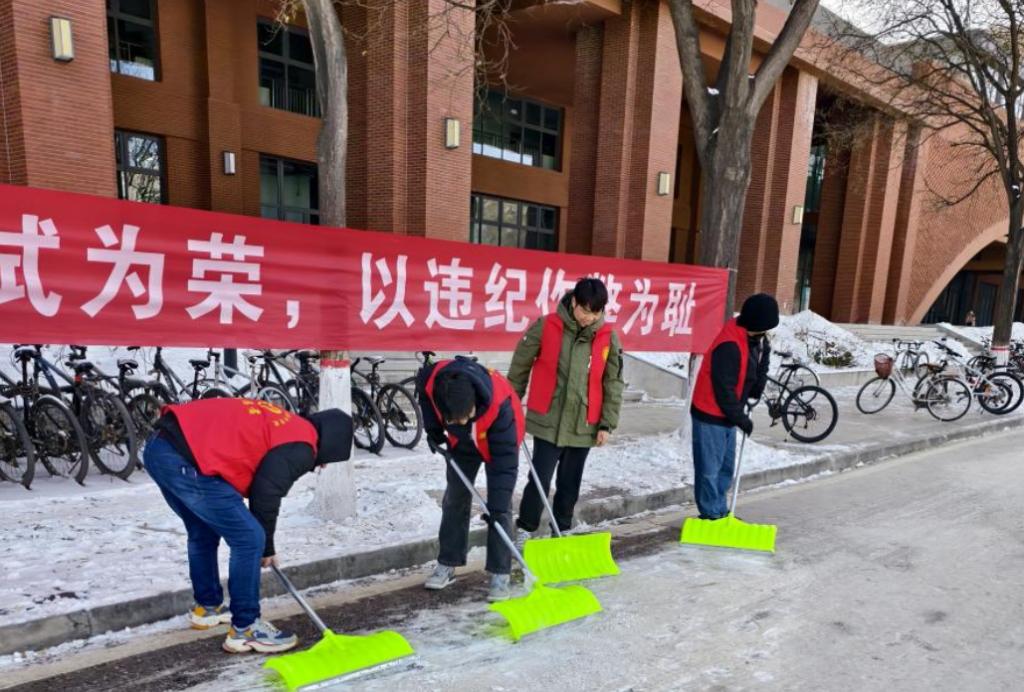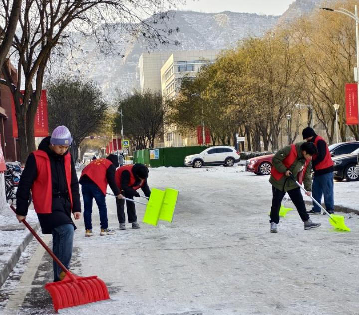 在两天的活动中,志愿者们根据后勤保障部榆中校区物业服务中心负责人的安排,分工明确,团结协作。他们手持铲子等工具,对公司楼宇及周边区域的积雪进行了彻底清理。尽管寒风凛冽,但志愿者们的热情却丝毫不减。他们的身影成为了冬日校园中最温暖的风景线,为师生们开辟出了一条条安全的道路。