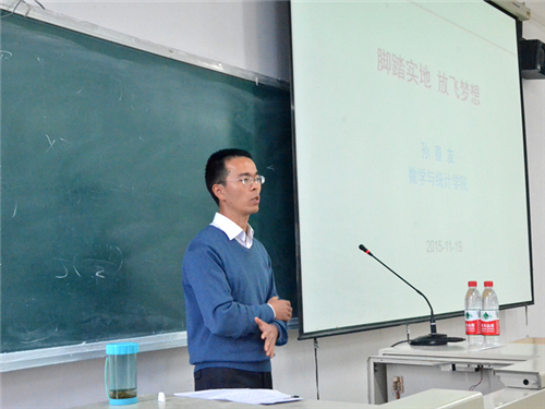 会上,孙春友老师首先亲切询问了新生同学们入校学习后对数学专业学习的感触,随后对听课及课后学习提出了一些建议,并结合自身实际情况说明学习应劳逸结合。接着,孙春友老师强调大一的学习正是打基础的时候,大一新生们应脚踏实地地学习,并说道“人生的道路虽然漫长,可是关键处只有几步”。孙春友老师以牛顿、Andrew Wiles等数学天才为例,鼓励同学们在平时的学习中多一些思考,争取今后在数学领域取得优秀成果。最后,同学们积极提问,与孙春友老师对学习数学的过程中出现的困惑进行了交流探讨。本次见面会持续了近两个小时,最终在轻松愉快的氛围中圆满结束。