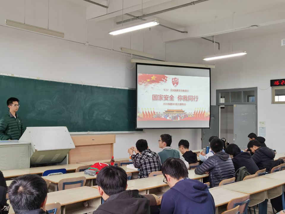 2021年4月15日下午4:15,伟德体育伟德体育官方网站2020级数学类1班召开国家安全主题教育班会。班会主题为“践行总体国家安全观,统筹发展和安全,统筹传统安全和非传统安全,营造庆祝建党100周年良好氛围”.