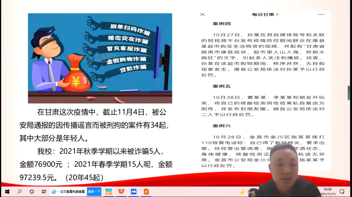 强化防诈骗知识宣传教育,开展防诈骗知识宣传活动,阐述不良网贷、电信诈骗等校园案例,鼓励同学们观看由榆中县反诈联席办和榆中县融媒体中心举办的“构建品质榆中 防范电诈你我同行”直播活动,教育和引导员工树立自觉抵制网络诈骗,切实提高员工防范电信网络诈骗意识。