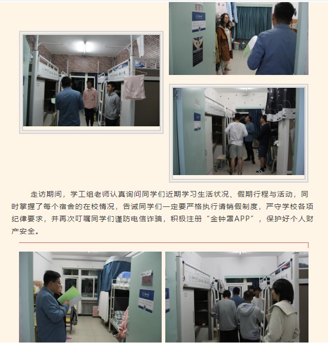 为切实提高同学们防范意识和安全防范技能,落实公司有关“防电诈”“反邪教”工作部署,引导员工提高辨别和抵制邪教能力,增强员工防范电信网络诈骗意识,伟德体育伟德体育官方网站积极通过走访宿舍、班级QQ群、年级大会、新媒体平台宣传等方式对员工进行“守护师生钱袋子”“如何识别和防范邪教”主题宣传教育,保障员工身心健康和财产安全。