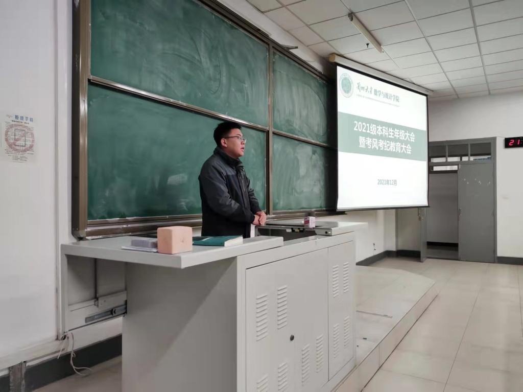 12月9日晚八点,伟德体育伟德体育官方网站在天山堂B604教室召开2021级本科生年级大会。公司专职辅导员武刚老师主持会议,新生副班主任、全体新生参加会议。