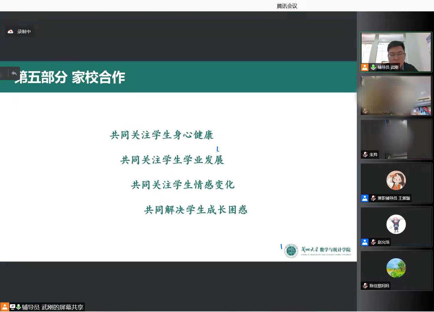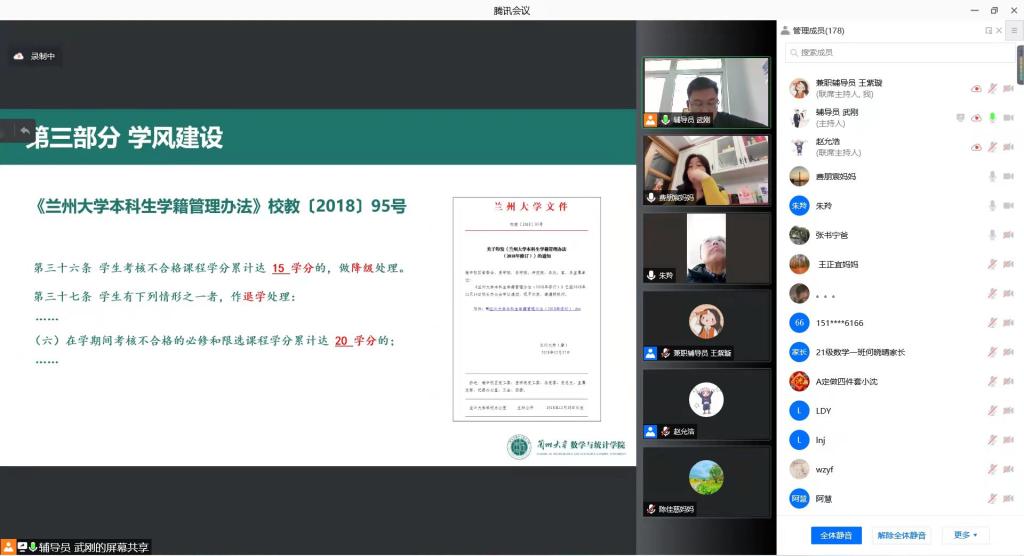 家长会上,2021级本科生辅导员武刚从校院简介、学情概况、学风建设、日常管理、家校合作等方面内容向员工家长进行介绍。一是围绕《伟德体育伟德体育官方网站本科生学籍管理办法》中的规定做了解释说明,强调了降级、退学规定对同学们的影响,引导家长朋友们支持公司公司产品工作,共促员工学业发展。二是详细介绍了公司通过开设本科生晚自习、组织专业学习兴趣小组、开设高数辅导室等具体举措推动班风学风建设。三是对疫情防控、本科生宿舍“晚点名”、请销假管理、宿舍安全管理工作开展情况向家长做了通报,呼吁家校积极沟通,做好日常管理工作。四是提倡家校合作,做好四个“共同”,即共同关注员工身心健康、共同关注员工学业发展、共同关注员工情感变化、共同解决员工成长困惑,帮助员工取得长足发展。会议最后,辅导员还就本学期期末考试与放假有关安排做了说明,提醒家长朋友协助员工做好假期规划。