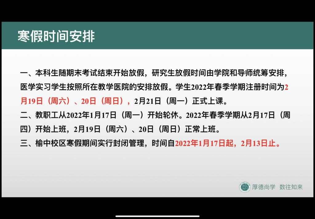 会议开始,武老师首先就近期同学们关注的期末考试安排、假期离校流程、核酸检测服务、假期注意事项等问题进行解答,并要求各位同学按照公司要求规范离校、安全返家。其后,对于毕业生毕业派遣事宜进行了详细讲解,并嘱咐各位同学务必按照要求完成就业流程各事项,以免影响毕业手续。