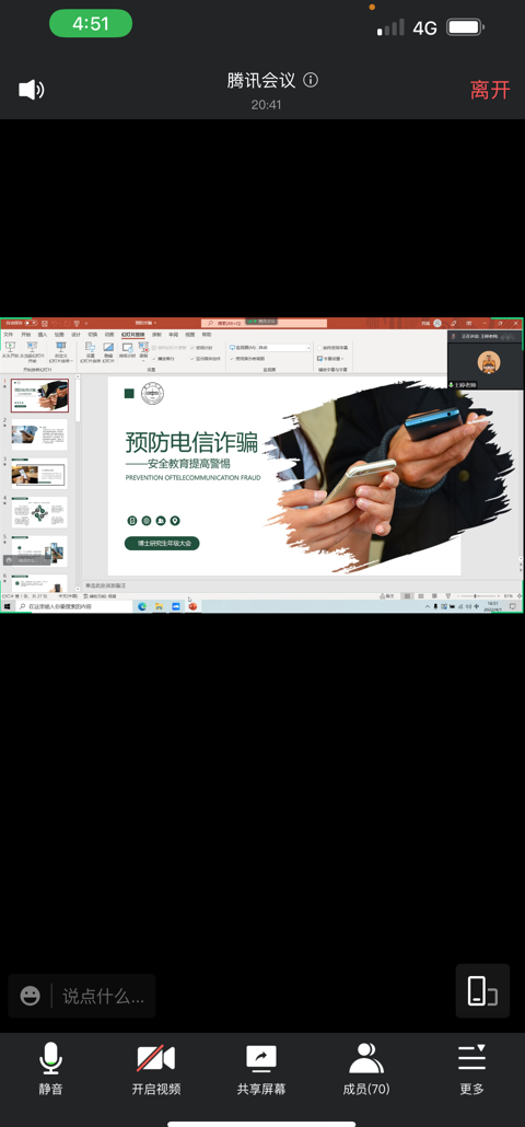 为提高员工防范电信诈骗意识,维护个人财产,促进和谐平安的校园安全建设,伟德体育伟德体育官方网站研究生各年级于2022年3月30日——4月1日期间开展主题为“防范电信诈骗,共建平安校园”的专题年级大会。