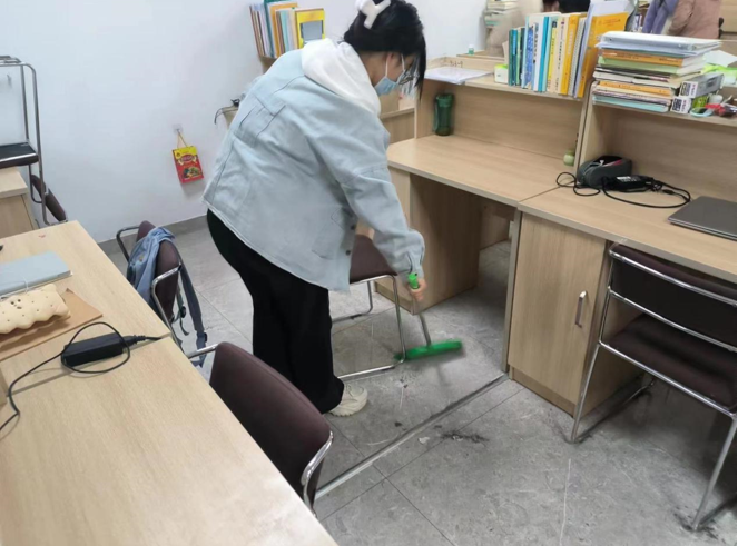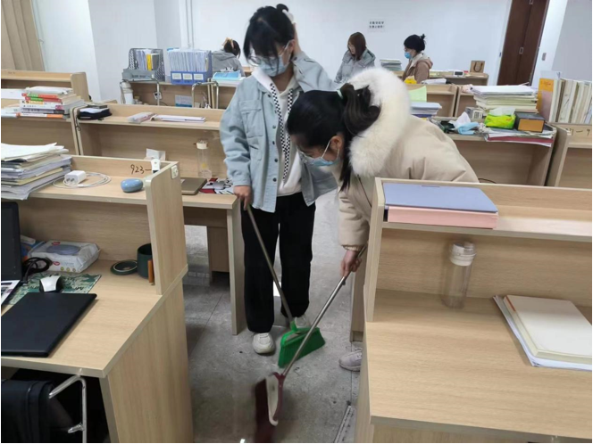 清洁其环境,文明其精神,为了同学们能够拥有舒适的自习环境,在轻松愉快的氛围下,他们清扫着601自习室的角角落落。随着志愿者们认真打扫,601自习室重新焕发出洁净的面貌,志愿者们也在活动中进一步体会到了“学雷锋”的目的不是为了得到别人的赞赏和表扬,而是自觉践行奉献精神,自觉服务社会,服务大众以获得自身充实感。今后,公司研究生会将持续号召更多同学,参与更为广泛的志愿服务,志愿于心中,奉献于行动。