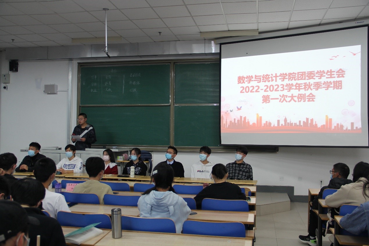 2022年11月5日晚上19:00,为了更好的开展团委和员工会的工作,促进新成员对部门工作的深入认识,伟德体育伟德体育官方网站团委员工会在天山堂B503开展了本学期第一次大例会。大例会由数院员工会主席朱梦漪主持,2022级、2021级和2020级团委员工会成员以及各班班长参加了本次会议。