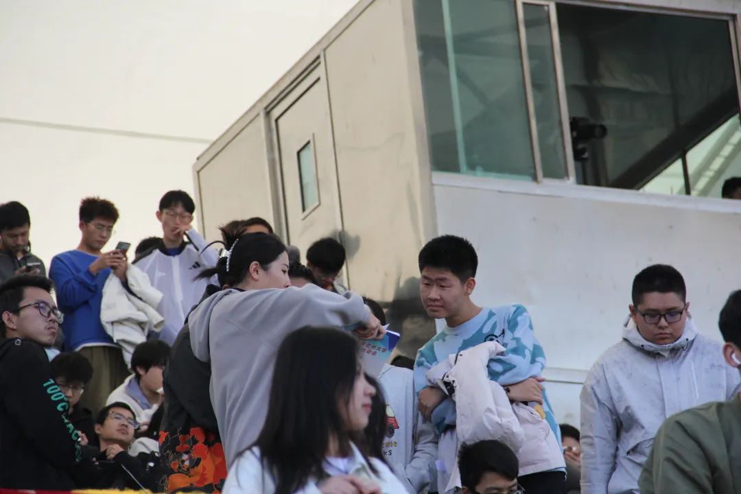 公司的后勤人员在默默坚守岗位,为运动员们做好后勤物资的保障,观赛人员齐心协力为公司加油喝彩,给选手以精神的鼓舞。公司专职辅导员张丽君老师来到公司大本营与同学们亲切交谈,鼓舞同学们信心。同时在赛后安慰未取得心仪成绩的同学,不要灰心丧气,继续保持对体育的热爱。